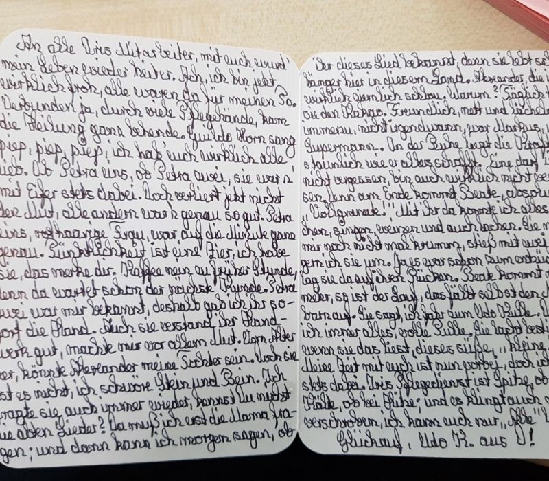 Jeder Brief, jede Nachricht und jedes „Dankeschön“ zeigt uns, dass unsere Arbeit etwas bewegt. Wenn auch Sie uns ein paar persönliche Zeilen schicken möchten, per Post oder E-Mail, freuen wir uns sehr.